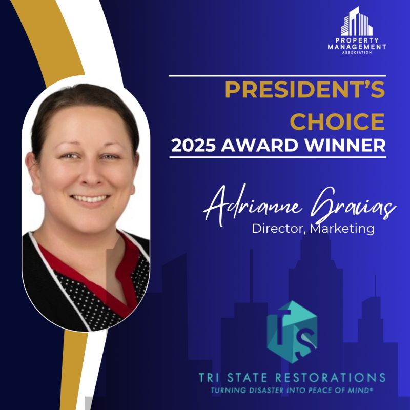 Clarksburg, Md. (Nov 11, 2025) — Tri State Restorations proudly announces that Adrianne Gracias, Director of Marketing and Communications, has been named the 2025 President’s Choice Award recipient by the Property Management Association (PMA). The honor was presented by 2025 PMA President Lewis Shapiro during the association’s annual awards ceremony, Thursday, November 6, 2025. The […]